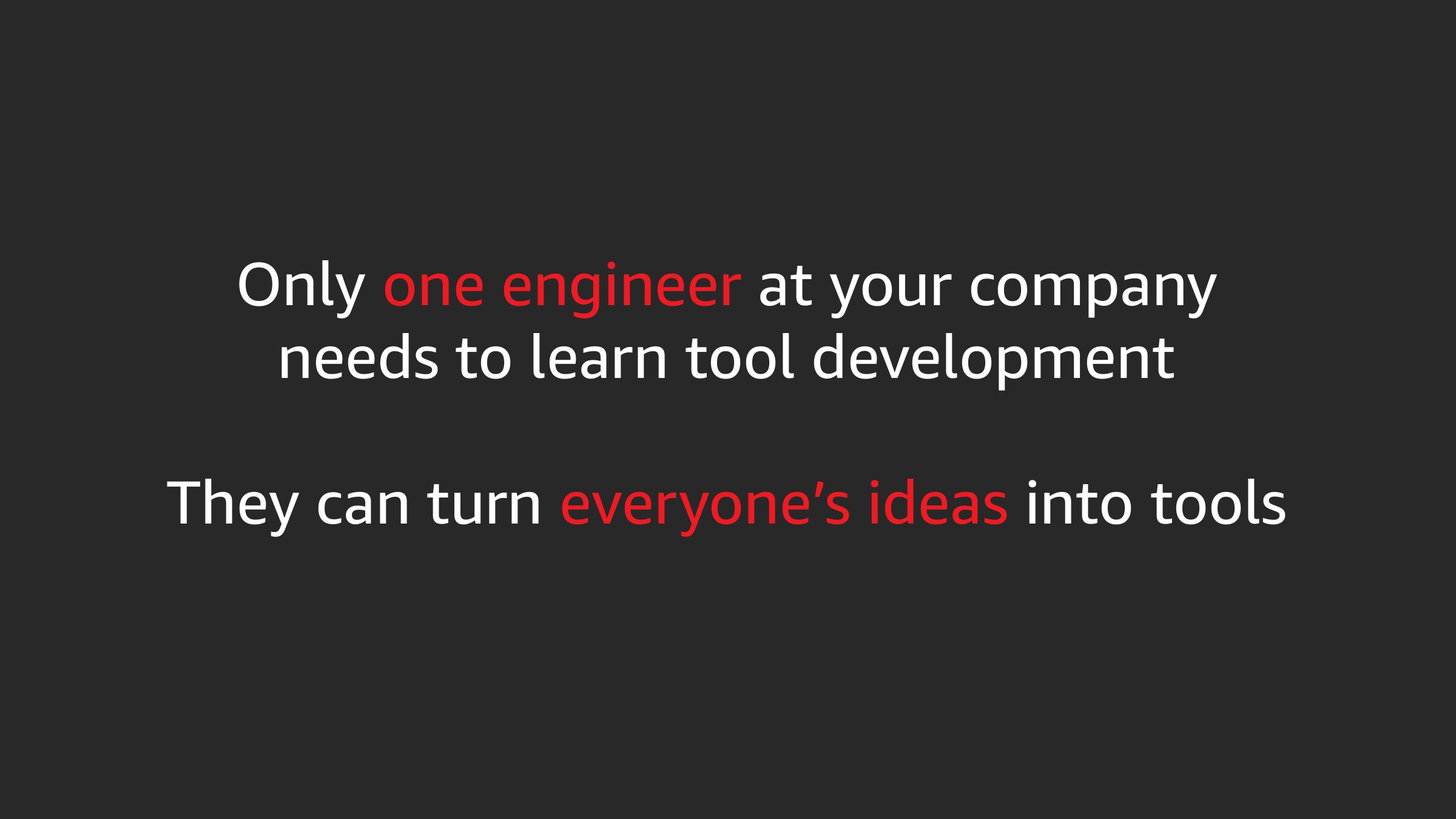 Only one engineer at your company needs to learn tool development They can turn everyone’s ideas into toolsslide 47: