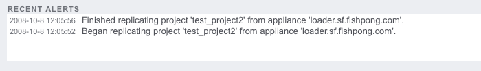 This section shows the most recent alerts from the appliance alerts logging system. Clicking the alert box will take you to the alerts log viewer, where each can be examined in more detail.