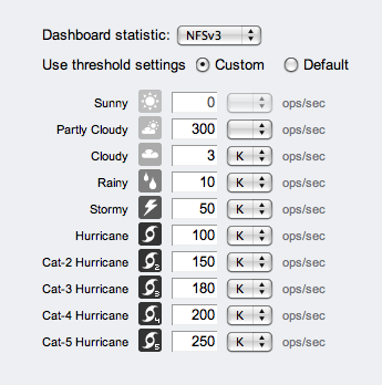 The weather icon displayed is based on configurable thresholds, and the average value from the last 60 seconds; click the icon to go to the configuration screen, shown below.