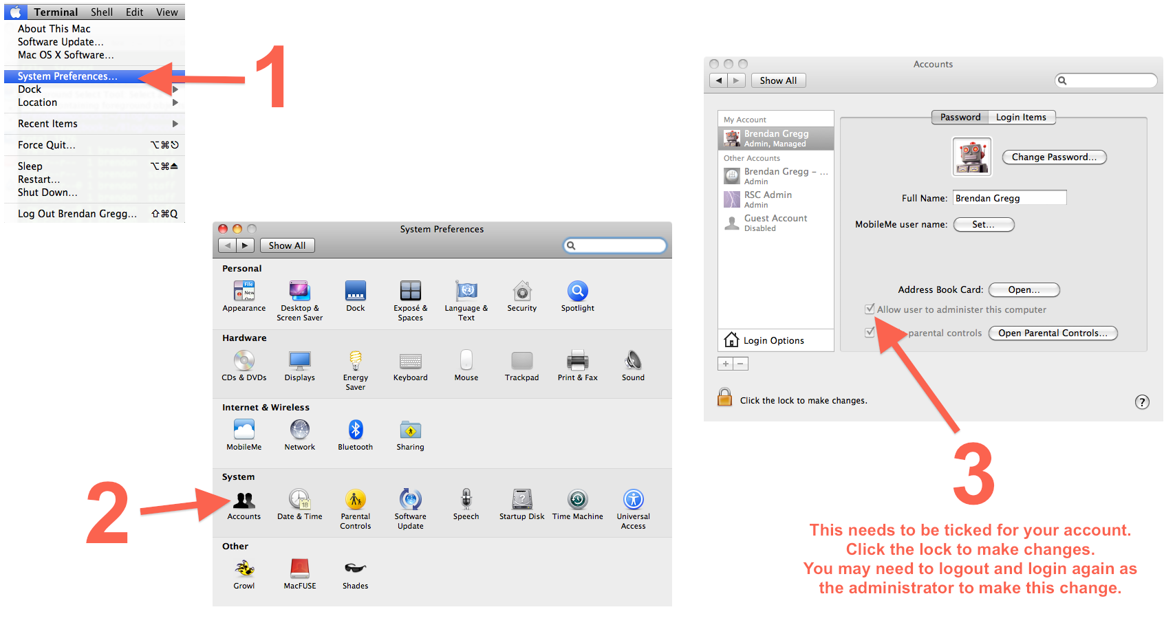 If sudo says "permission denied", check your admin status.