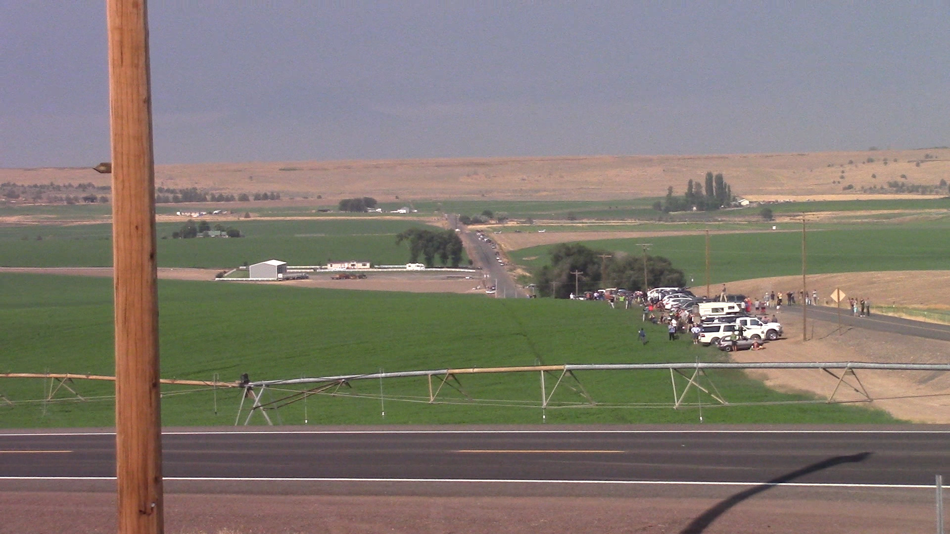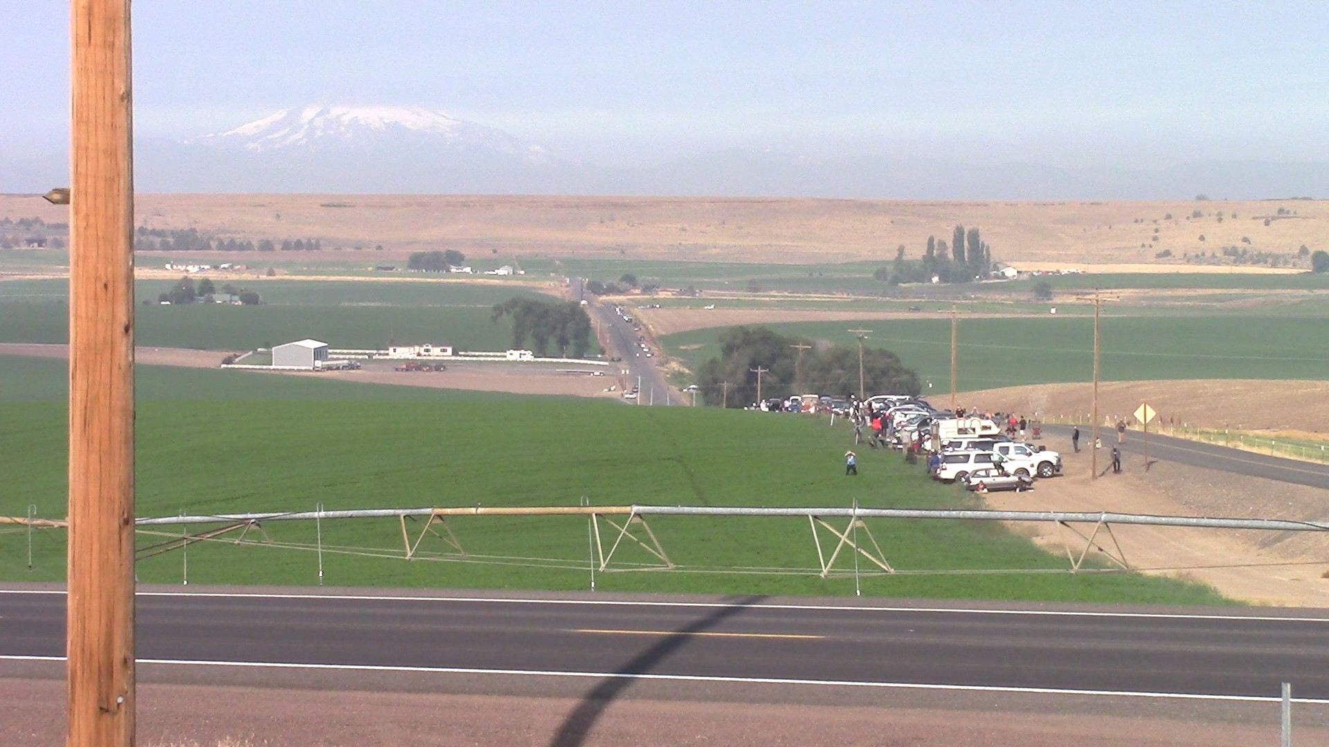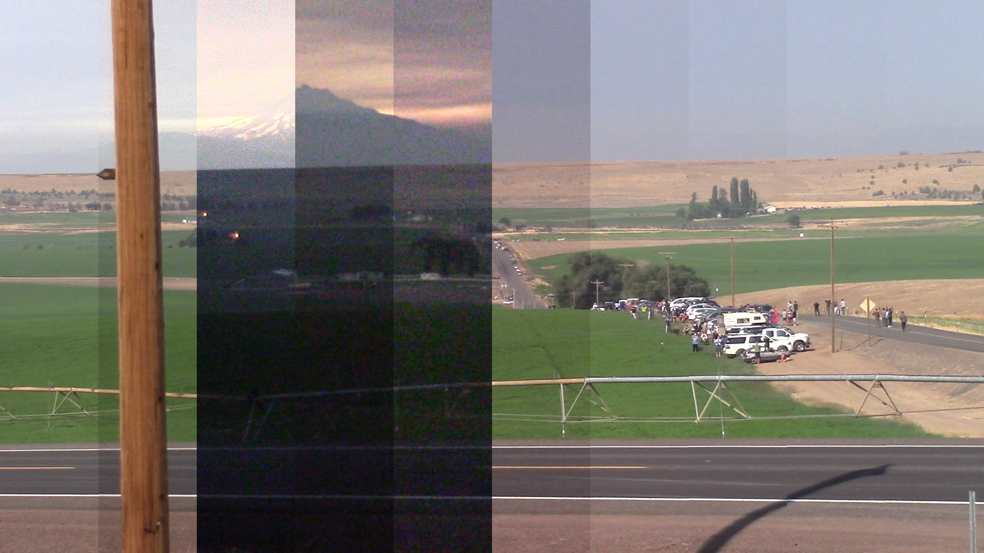 While all eyes and instruments were aimed at the total eclipse of August 21st, I had a video camera pointed in the opposite direction. I was hoping to catch changes in the landscape – perhaps the Moon's shadow as it raced by. This was filmed from on a road north east of Madras, Oregon, almost right on the center line. It was just an experiment that I wasn't going to share, but when I saw it afterwards I thought it might interest some. Below you'll find time lapse and full videos, frames, and a montage.