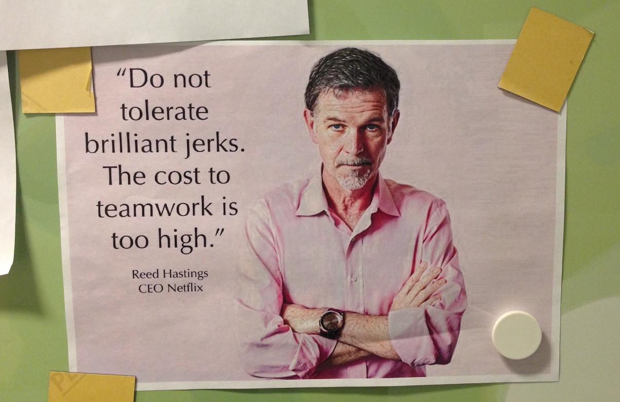 In over three years at Netflix, I've worked with zero brilliant jerks. The "no brilliant jerks" policy works, and it's been great. If we hired any in that time, they either changed their ways or left the company before I could interact with them.