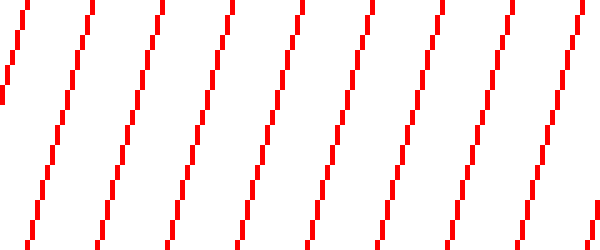 What can you identify in this? In this post I'll draw some synthetic subsecond offset heat maps for CPU samples, so I can separate out and show you patterns. In the real flame scope tool, these patterns can be selected and a flame graph generated, to show the responsible code paths (I'm not demonstrating flame graphs here).