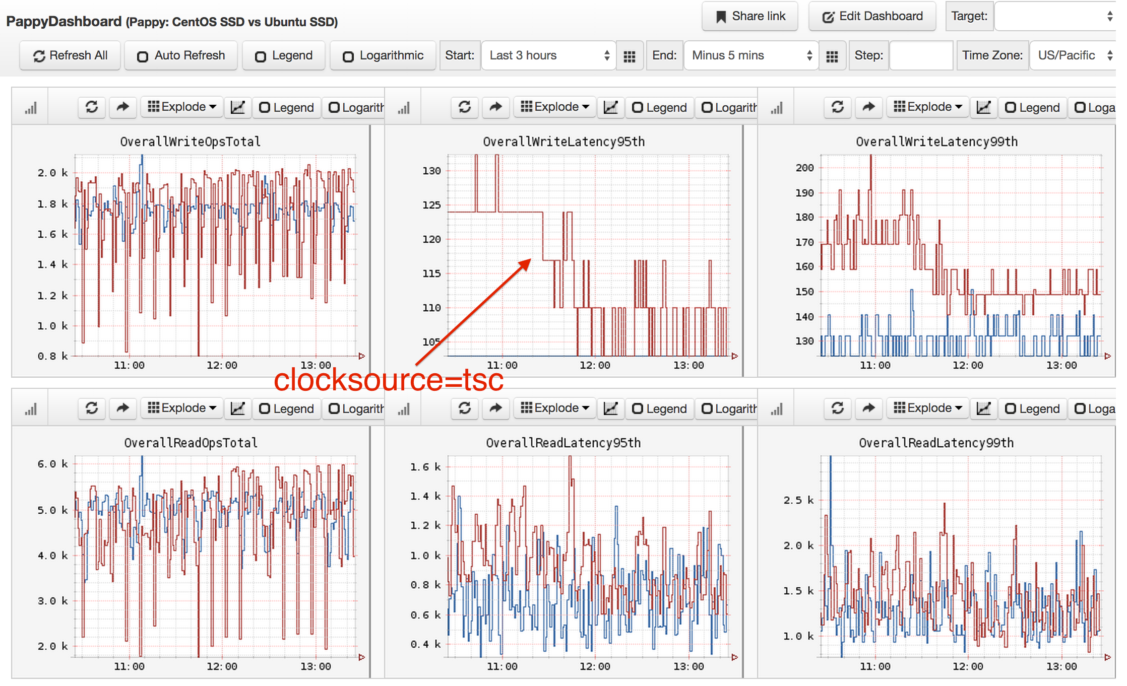 Ok, so it's defaulted to xen, which we saw in the flame graph (the tower ends with pvclock_clocksource_read()). Let's try tsc, which should be the fastest: