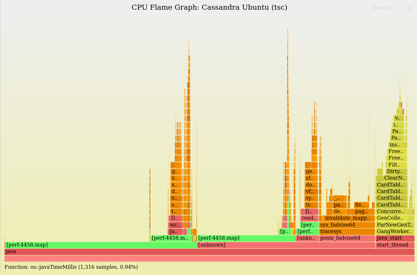 A Cassandra database cluster had switched to Ubuntu and noticed write latency increased by over 30%. A quick check of basic performance statistics showed over 30% higher CPU consumption. What on Earth is Ubuntu doing that results in 30% higher CPU time!?