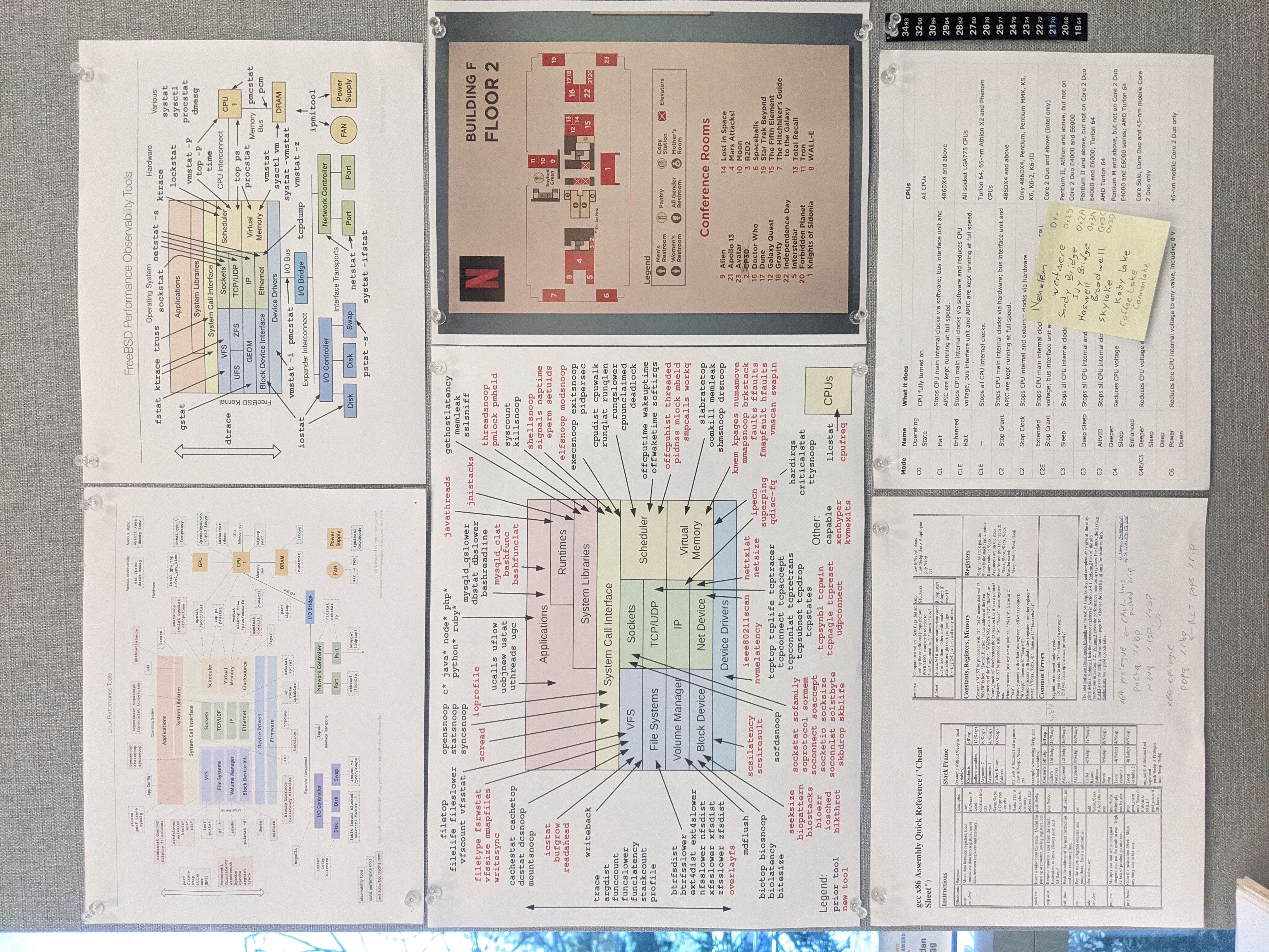 (Trivia: I had penciled the frame pointer function prologue and epilogue on my Netflix office wall, lower left.)