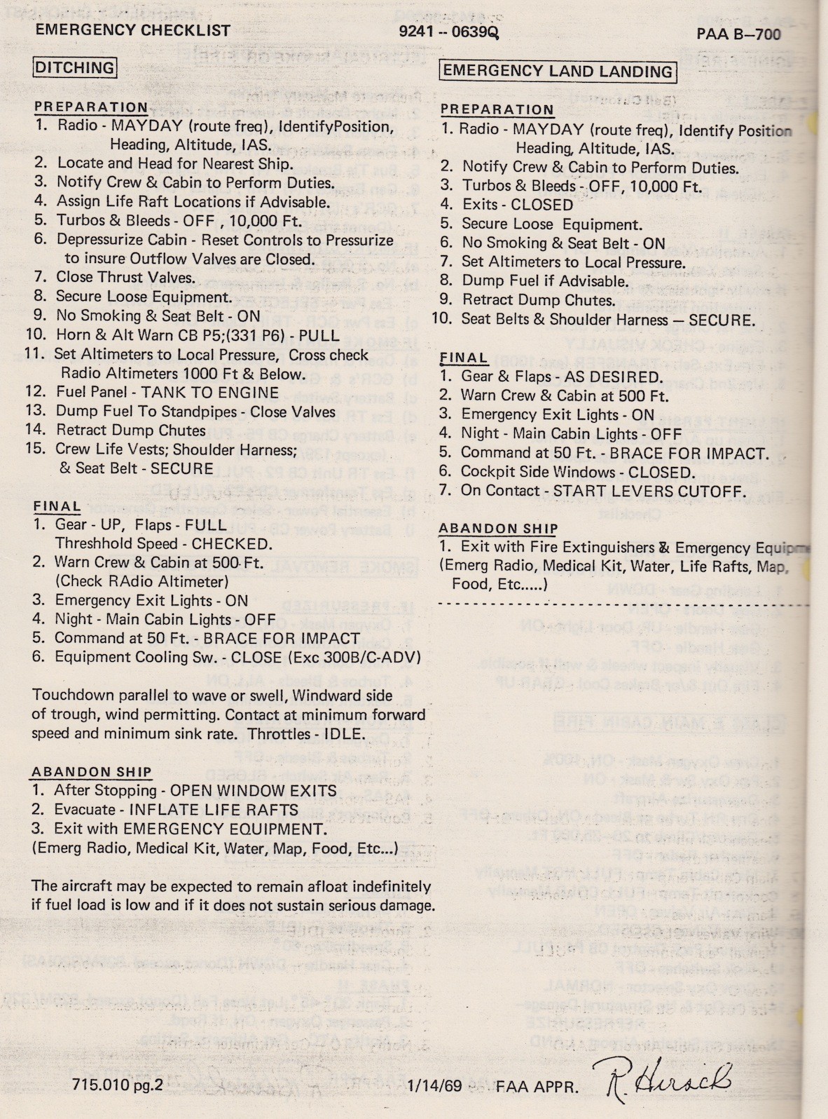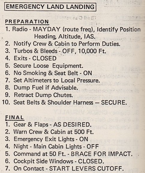 Boeing 707 Emergency Checklist